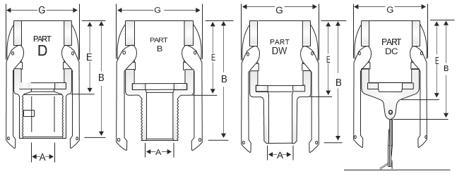 Part DW – Weld End (same basic dimensions as Part D) | |||||||||||