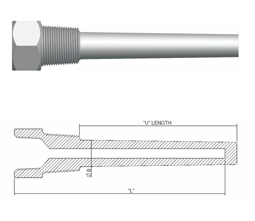 | Process connection | Part No. | Stem Length ‘L’ | Insertion Length ‘U’ | Diameter ‘B’ | Overall Length O.A.L. | ||||